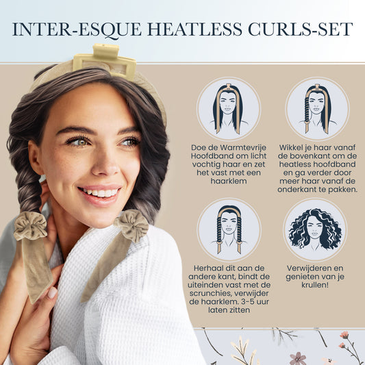 INTER-ESQUE - Heatless Curls - Krulspelden - haarrollers + Gratis Scrunchies - Bruin