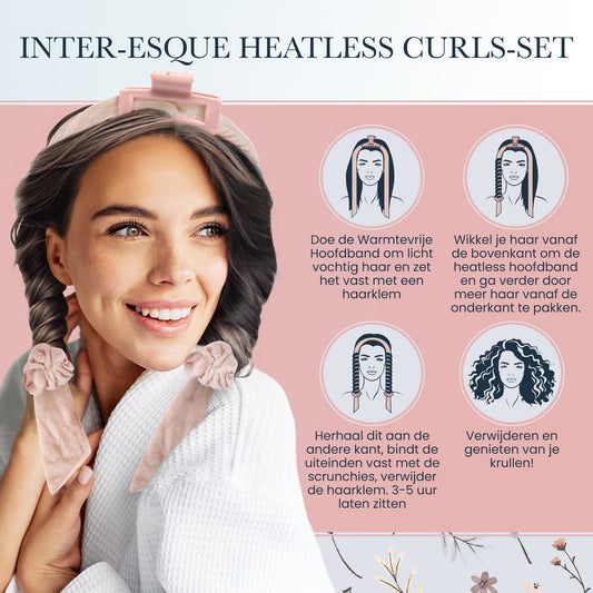 INTER-ESQUE - Heatless Curls - Krulspelden - haarrollers + Gratis Scrunchies - Roze