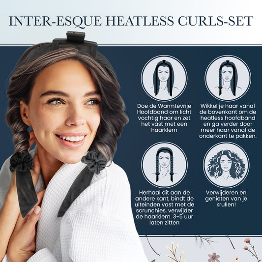 INTER-ESQUE - Heatless Curls - Krulspelden - haarrollers + Gratis Scrunchies - Zwart