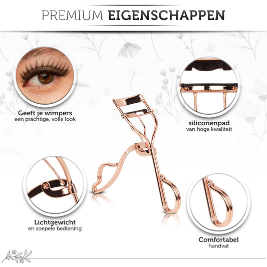 INTER-ESQUE® Wimperkruller + 5x Gratis Extra Siliconen Pad - Rosé Goud