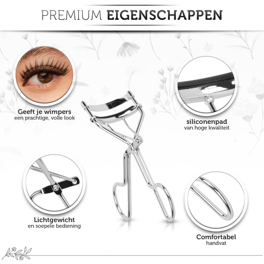 INTER-ESQUE® Wimperkruller - Eyelash Curler + 3x Gratis Extra Siliconen Pad & 3x Extra Kam - Zilver