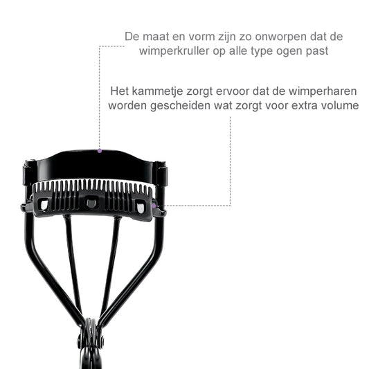 INTER-ESQUE® Wimperkruller - Eyelash Curler + 3x Gratis Extra Siliconen Pad & 3x Extra Kam - Zwart